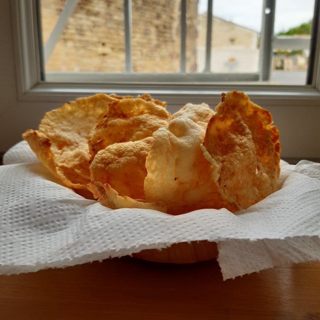 Les pétales d’emping peuvent être conservées avant la friture. Ma mère aimait faire frire des empings pour snacking ou pour accompagner le plat. Elle saupoudre du sel pour le gôut. Appart de ça, les empings frits peuvent être également modifiés en chips au caramel pimenté ! Ha ha … oui, les indonésiens aiment bien ajouter le piment dans tout l’aliment 🙂