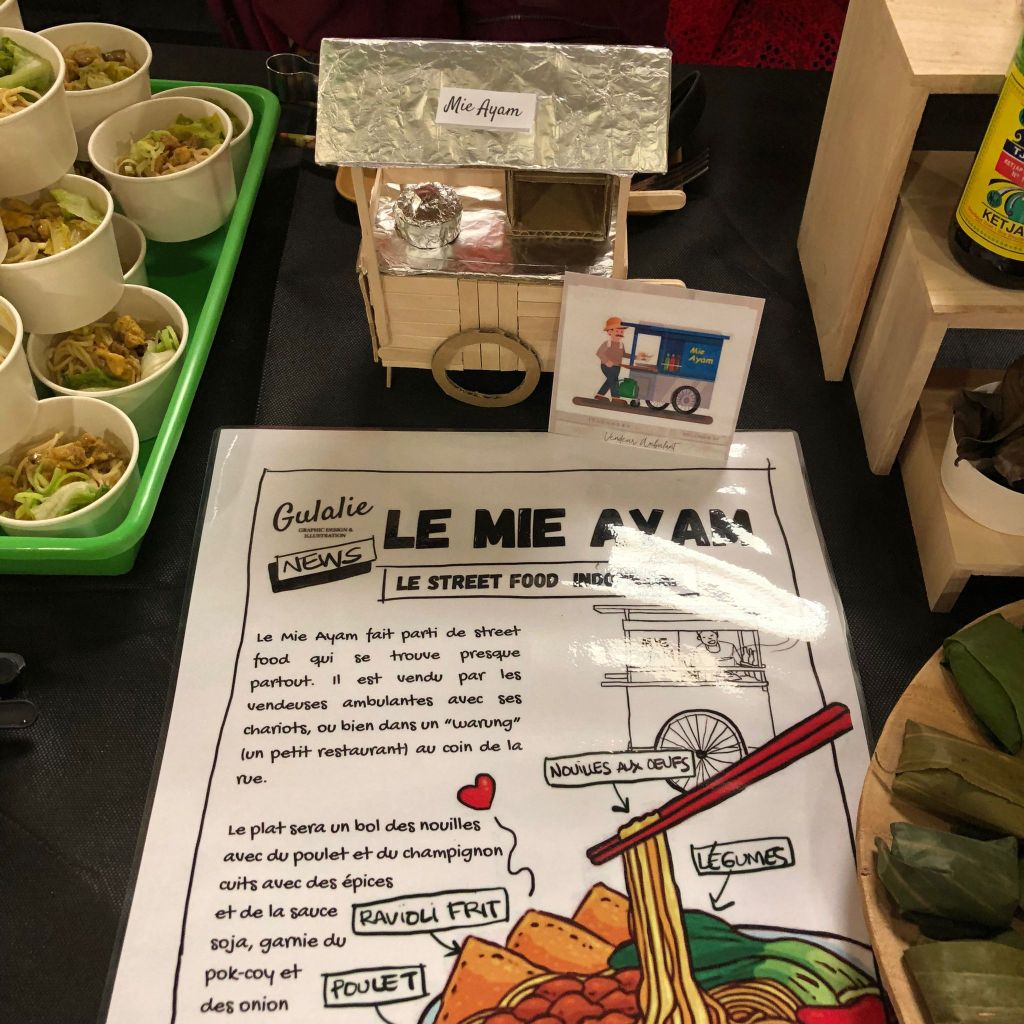 Pour faciliter la découverte des plats, l’équipe indonésien a décoré le stand avec des affiches contenant des illustrations et des informations sur la cuisine indonésienne.