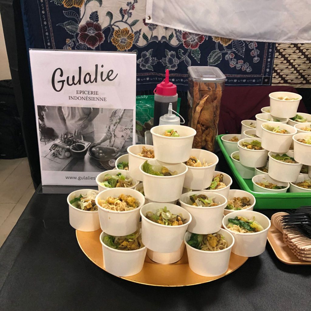 Eh bien, pour Gulalie, malgré certains obstacles comme être malade par l’Omicron et la longue grippe hivernale, j’ai eu la chance d’élargir ma portée sur le marché. En juin 2022, j’ai participé au mini marché organisé par le Consulat d’Indonésie à Marseille. En octobre, je suis allé à Villeneuve-les-Maguelones pour participer au Gotong Royong, une réunion pour la diaspora indonésienne en France. Et ce n’était pas le dernier. Au 26 novembre, j’ai participé à un événement annuel organisé par l’Association Avenir En Héritage appelé Les Papilles du Monde à la Salle de l’Oratoire de La Rochelle. Cet événement annuel organisé par l’Association Avenir En Heritage vise à renforcer les relations interculturélles entre les citoyens et les ressortisants étrangères à La Rochelle.