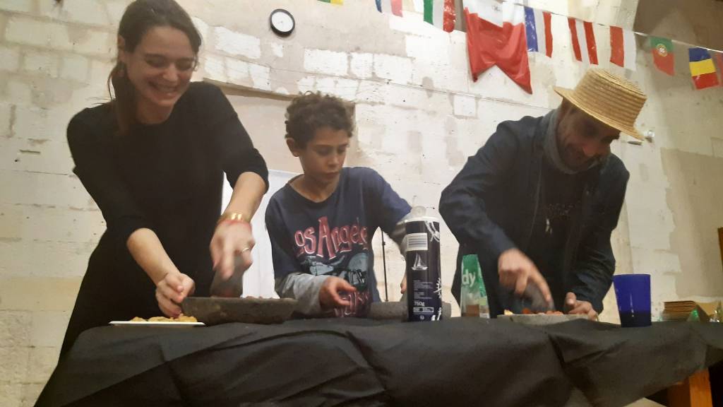 Le stand indonésien a également présenté une activité culturelle qui a attiré l’attention du public : le concours de préparation de “sambal”. Trois participants étaient en combat pour faire le plus délicieux sambal selon le jury. Ils sont fournis avec un ‘cobek’ – le mortier et pilon traditionnel indonésien, des piments, des échalotes, de l’ail, des tomates, du sucre de coco et du sel. Comme ils n’ont jamais vu ni utilisé cet ustensile, tous les participants s’efforçaient de faire de la pâte de piment avec ce mortier et pilon. C’était drôle 🙂